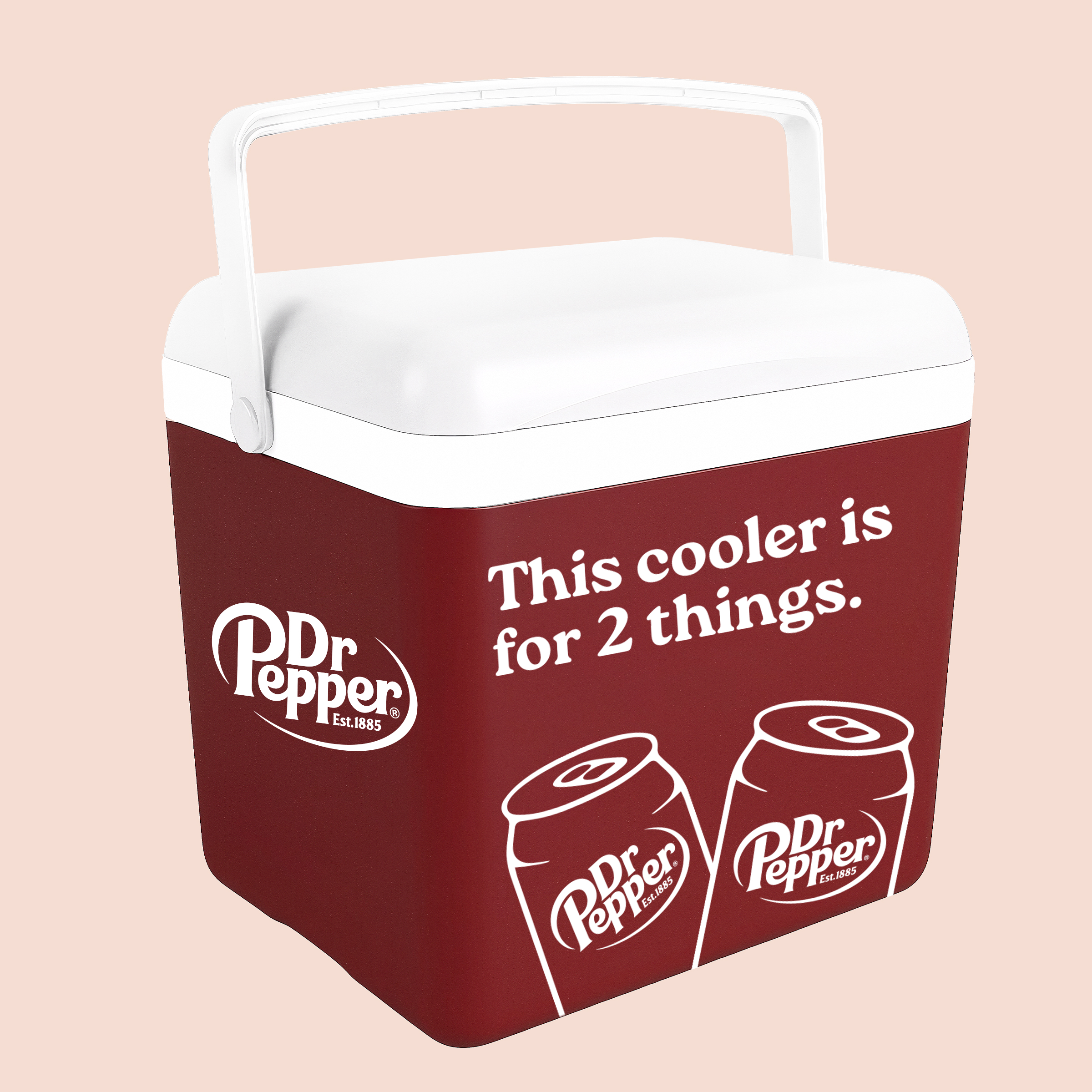 Big enough for a full squad of cans, this cooler makes sure your tailgate or beach day stays stocked and ice-cold. This cooler features two built in cupholders on the lid and has a 36-hour ice retention at temps at or below 72 degrees. Cooler Size: 14" W x 13" H x 10.5" D. 15 liter capacity holds up to 24 standard 12 oz. cans with ice.